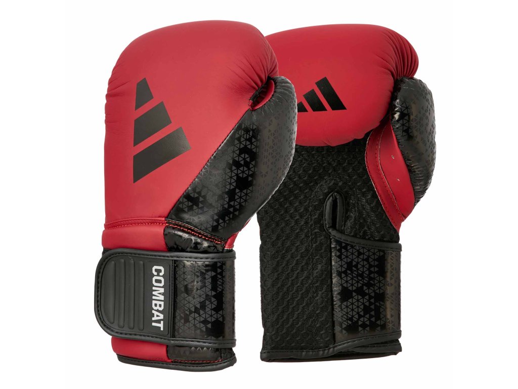 Boxerské rukavice adidas Combat 50 jsou univerzálně používané pro sparring, tak i trénink na pytli, nebo lapách. Boxerské rukavice adidas v mají klasickou, půlkulatou konstrukci. Důraz je kladen na silné polstrování na kloubech, potřebné pro boxerské techniky a bezpečí vašich rukou. Tento model rukavic je vyrobený ze syntetické kůže. Vnitřní výplň se skládá z několika vrstev pěn. Palec rukavice je přichycen k hlavní části rukavice pevným páskem jako prevence proti zranění této citlivé části ruky. Zapínání na suchý zip je cca 8 cm široké, dostatečně podporuje a zpevňuje zápěstí. Tento model doporučujeme pro středně pokročilé a pokročilé sportovce.