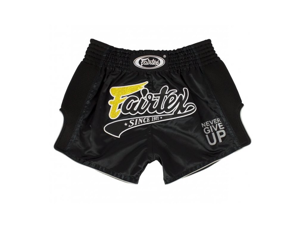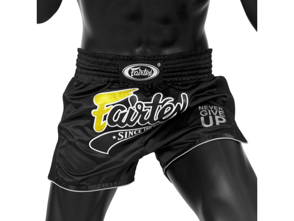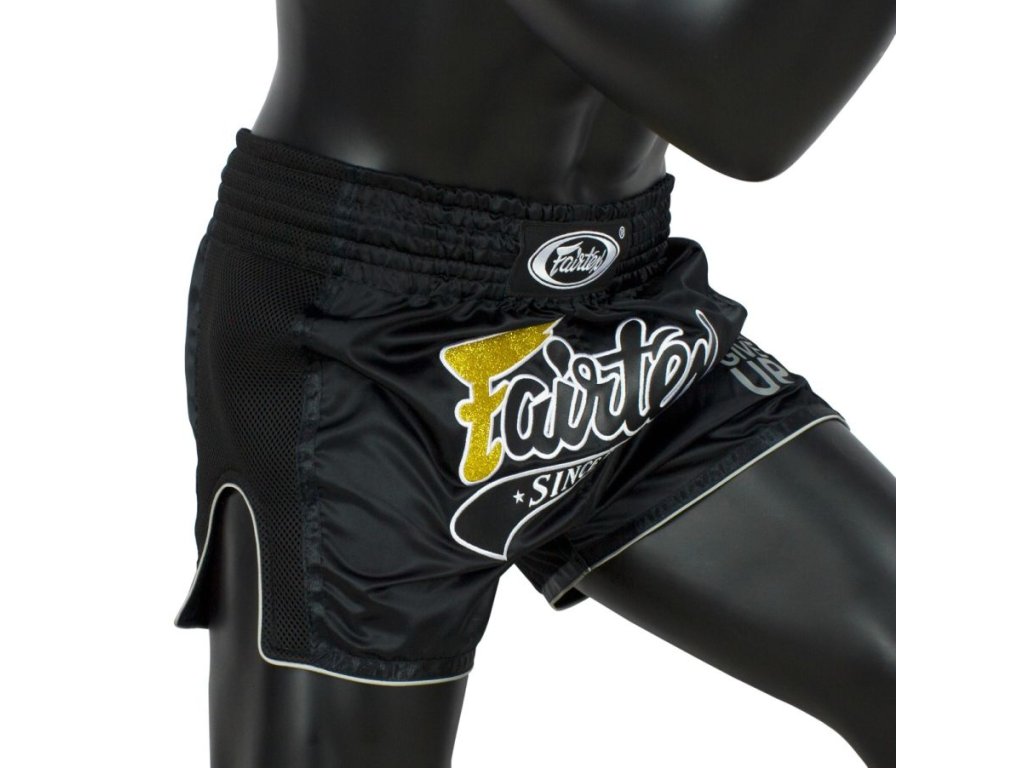 Fairtex trenky – přinášejí kombinaci klasického thajského stylu a inovativního provedení. Střih je kratší a užší než u tradičních modelů Fairtex, což zajišťuje vyšší pohyblivost a maximální komfort při kopacích technikách. Vysoký elastický pas zajišťuje pevné držení bez přetáčení. Materiál Micro Satin je příjemný na dotek, odolný vůči opotřebení a poskytuje lehkost, kterou ocení každý fighter. Moderní design v černé barvě s výrazným grafickým motivem zvýrazní vaši osobnost na tréninku i v ringu.