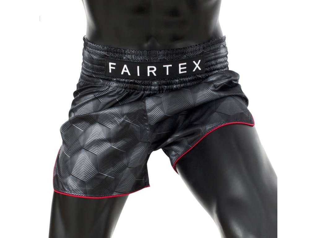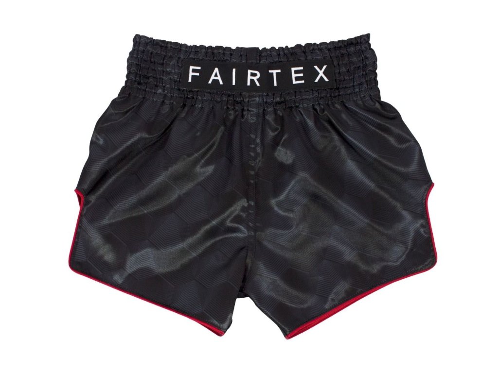 Fairtex trenky – přinášejí kombinaci klasického thajského stylu a inovativního provedení. Střih je kratší a užší než u tradičních modelů Fairtex, což zajišťuje vyšší pohyblivost a maximální komfort při kopacích technikách. Vysoký elastický pas zajišťuje pevné držení bez přetáčení. Materiál Micro Satin je příjemný na dotek, odolný vůči opotřebení a poskytuje lehkost, kterou ocení každý fighter. Moderní design v černé barvě s výrazným grafickým motivem zvýrazní vaši osobnost na tréninku i v ringu.