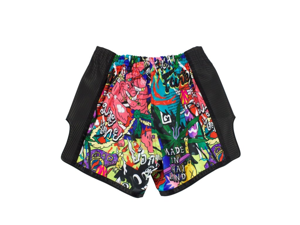 Fairtex x URFACE trenky jsou výsledkem exkluzivní spolupráce mezi renomovanou thajskou značkou Fairtex, která vyrábí špičkové vybavení pro bojové sporty, a populární streetwear značkou URFACE. Ilustrace vytvořená speciálně pro tuto edici pochází od Sahreda Toye (Arak Aonwilai) – umělce, který spolupracoval se značkami jako Coca-Cola, BMW či Lee Jeans. Trenky si zachovávají všechny funkční prvky oblíbené řady Fairtex – mají zkrácený a užší střih, který podporuje maximální pohyblivost při výkopech a rychlých kombinacích. Vysoký elastický pas zajišťuje pevné držení i při intenzivním tréninku. Materiál Micro Satin je příjemný na tělo, odolný a lehký. Jedinečný grafický motiv v Pop Art stylu dělá z těchto trenek nejen výbavu pro trénink nebo zápas, ale i výrazný módní doplněk pro každého, kdo chce vystoupit z davu.