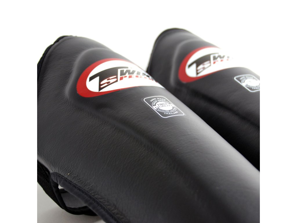 Chrániče holení na thajský box TWINS SPECIAL jsou vyrobeny z lehké pěny s vysokou hustotou a výbornou absorpcí nárazů. Chrániče pohodlně sedí na noze, nepřetáčí se, výborně chrání oblast holeně a nártu a jsou velmi lehké. Chrániče se zapínají pomocí dvou suchých zipů na zadní straně. Pásky suchých zipů se protahují oválnými průchodky. Toto zapínání zaručuje pevné a pohodlné zapínání. Chrániče jsou silně polstrované v oblastech, které jsou nejcitlivější.