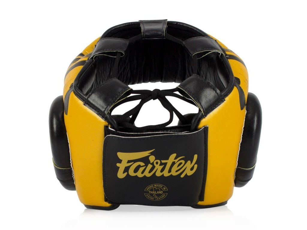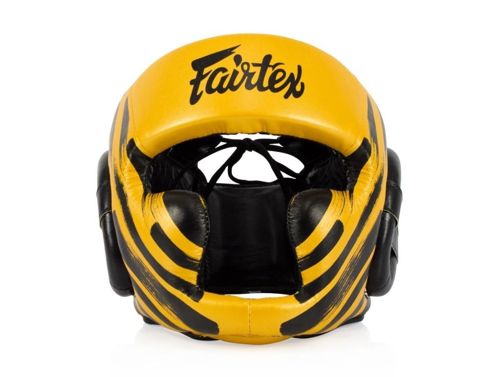 Fairtex přilba je bezpečná a velmi pohodlná, je vyrobena ze syntetické kůže, jenž je houževnatá a velmi odolná proti poškození. Vnitřní část přilby je šetrná k pokožce. Silné polstrování všech kritických oblastí přilby, dělá z tohoto modelu ideální pomůcku pro časté a intenzivní tréninky. I přes silné polstrování, přilba neomezuje ve výhledu a tím zaručuje komfortní a bezpečný trénink. Vnitřní polstrování je kombinací pěn z latexu a PUR. Přilbu Fairtex si také můžete přizpůsobit podle tvaru a velikosti hlavy pomocí zapínání na zadní části hlavy a šňůrek na vršku hlavy. Všechny výrobky thajské značky Fairtex jsou výsledkem špičkové ruční práce a testování přímo v kolébce thajského boxu.