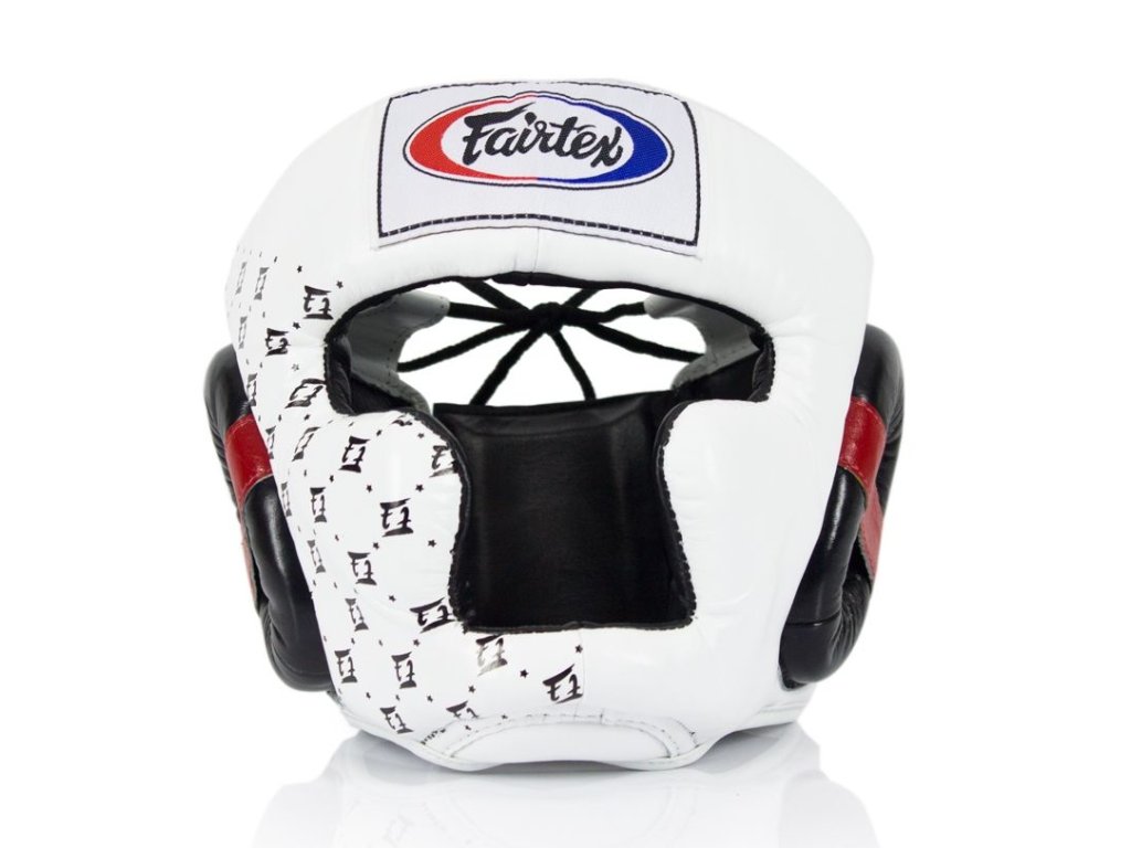 Model HG10 od Fairtex patří mezi nejbezpečnější přilby v nabídce značky. Byl vyvinut speciálně pro intenzivní sparing, kde je kladen důraz na ochranu citlivých oblastí – především nosu, lícních kostí, brady a temene hlavy. Jeho konstrukce je masivní, ale ergonomicky tvarovaná, takže i při vysoké míře krytí neomezuje periferní vidění. Přilba je vyrobena z prémiové pravé kůže, která zajišťuje dlouhou životnost, vysokou odolnost proti opotřebení a pohodlné nošení i při dlouhých trénincích. Vnitřní část je vyplněna vícevrstvou pěnou s vysokou hustotou, která spolehlivě absorbuje nárazy. Boční výztuhy efektivně chrání uši bez nadměrného tlaku. Fairtex HG10 je ideální volba pro bojovníky, kteří chtějí během tréninku tvrdé výměny bez kompromisu v ochraně a komfortu. Hodí se pro box, Muay Thai, K1 i MMA.